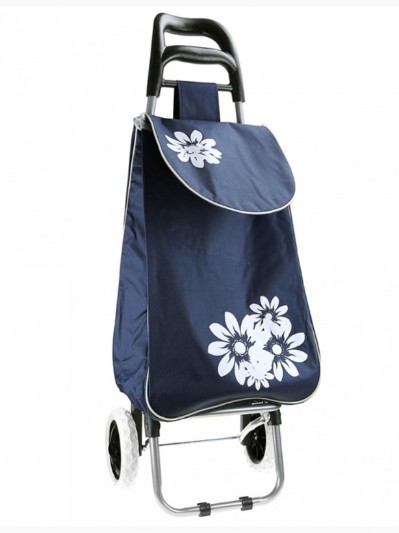 СУМКА ТЕЛЕЖКА НА КОЛЕСАХ ХОЗЯЙСТВЕННАЯ 33 ЛИТРА СИНЯЯ БЕЛЫЙ ЦВЕТОК