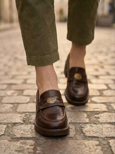 Лоферы Gustav Gutmann выполнены из мягкой натуральной кожи с винтажной обработкой. Лёгкая неоднородность оттенка и живая фактура создают эффект благородной «патинированной» кожи — именно такой приём сейчас активно используют в европейских коллекциях.