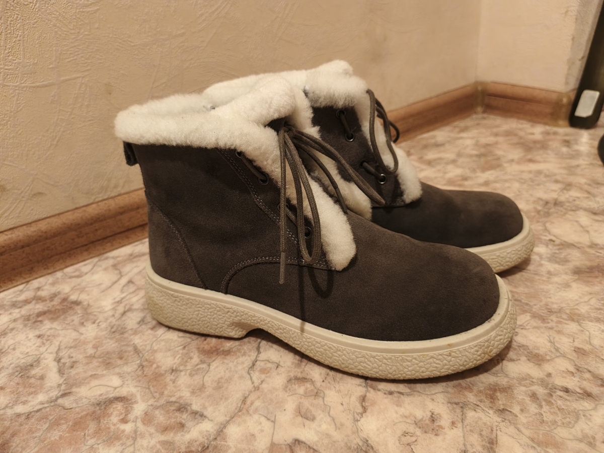 Теплые зимние ботинки выполнены из натуральной кожи ( велюра ), на натуральном меху серии комфорт. Разработаны специально для зимнего сезона. Подошва высокая, выполнена с анти-скользящим протектором. Отлично защищает от влаги, слякоти и снега.
