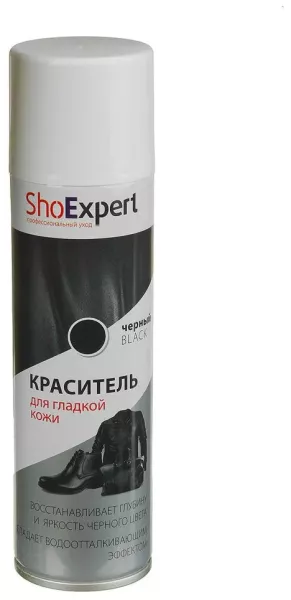 /files/shop_products/10531/imgs/4/m-orig-2-.webp/files/shop_products/10531/imgs/1/m-orig-1-.webp/files/shop_products/10531/imgs/3/m-orig.webp Краситель предназначен для: восстановления и усиления яркости цвета закрашивания потертостей придания устойчивого блеска повышения водоотталкивающих свойств гладкой кожи. Профессиональные советы от экспертов: Для повышения качества окрашивания, для его стойкости и равномерного распределения красителя, перед окрашиванием рекомендуем тщательно обработать обувь водоотталкивающей пропиткой «ShoExpert» ЧЕРНЫЙ SHOEXPERT SHOEXPERT АЭРОЗОЛЬ-КРАСКА Д/КОЖИ ЧЕРНАЯ 250 МЛ РОССИЯ
